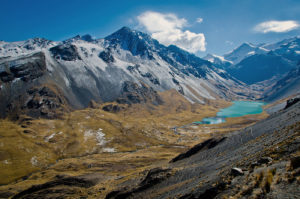 Après votre petit-déjeuner vous partez pour une journée sportive ! Descente de la rivière en contrebas du refuge avant de remonter dans la vallée Wilallojje pendant environ 1 heure. Vous montez sur la gauche par une sente raide au milieu des rochers pour atteindre un col situé à 4 740 m au bout d’une heure supplémentaire d’effort. Une belle vue se dégage sur la laguna Tres Picos ou Kunuijitinta (signifie avalanche de neige en aymara), situé au pied du glacier Tres Picos. Puis vous continuez sur une courbe de niveau pour rejoindre cette belle lagune où vous pourrez déjeuner. L’après-midi se poursuit avec la descente à la laguna Khota Pata par un sentier escarpé et raide d’environ 1 heure de marche. Là vous pourrez essayer d’y pêcher des truites. Enfin vous vous dirigez vers le refuge en entamant deux heures de marche. Dîner et nuit au refuge.